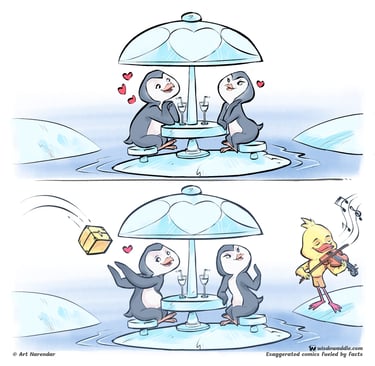Are you eager to read about a lovable penguin's behavior? Please check out this interesting short comic strip story based on penguin facts.