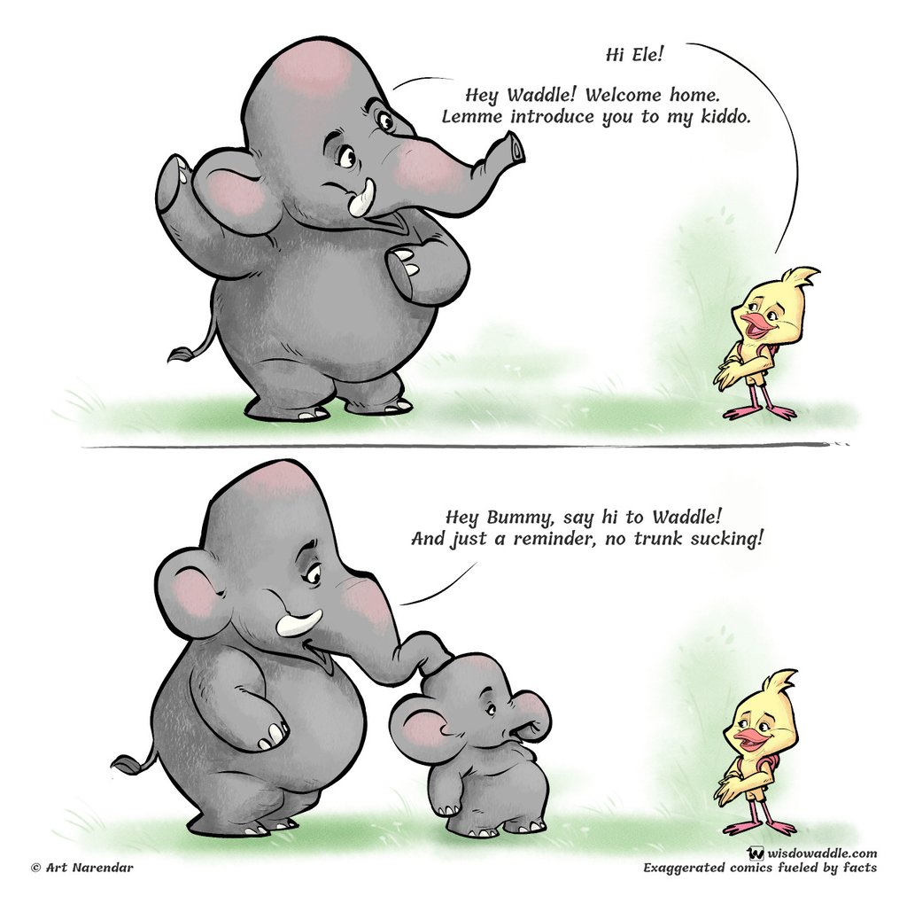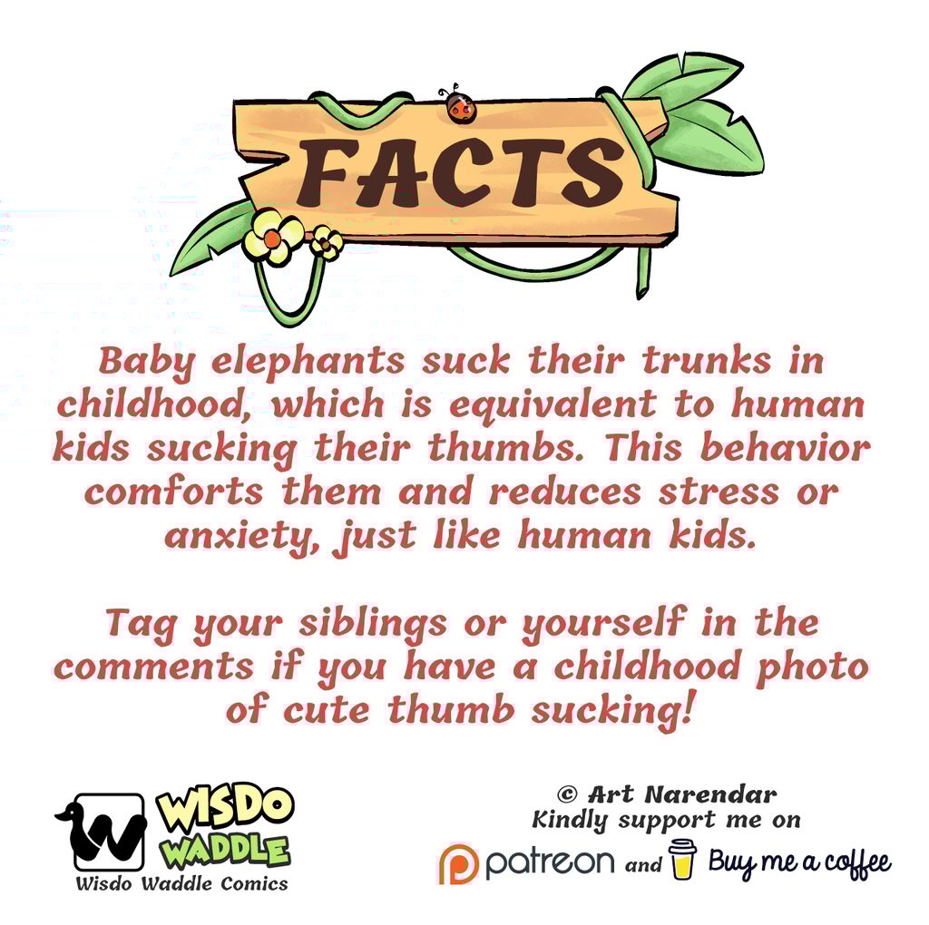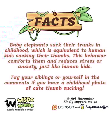 A cute story about thumb/ trunk sucking elephant!Please check out this interesting short comic strip based on elephant facts.