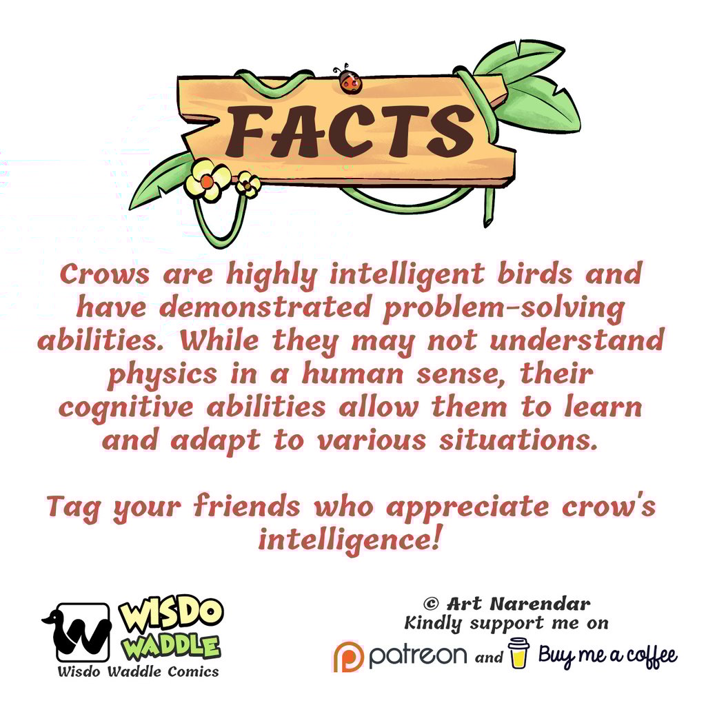Crows are intelligent birds. Want to read an amazing fact about them! Please check out this interesting short comic strip based on Crow facts.