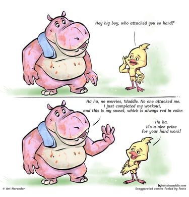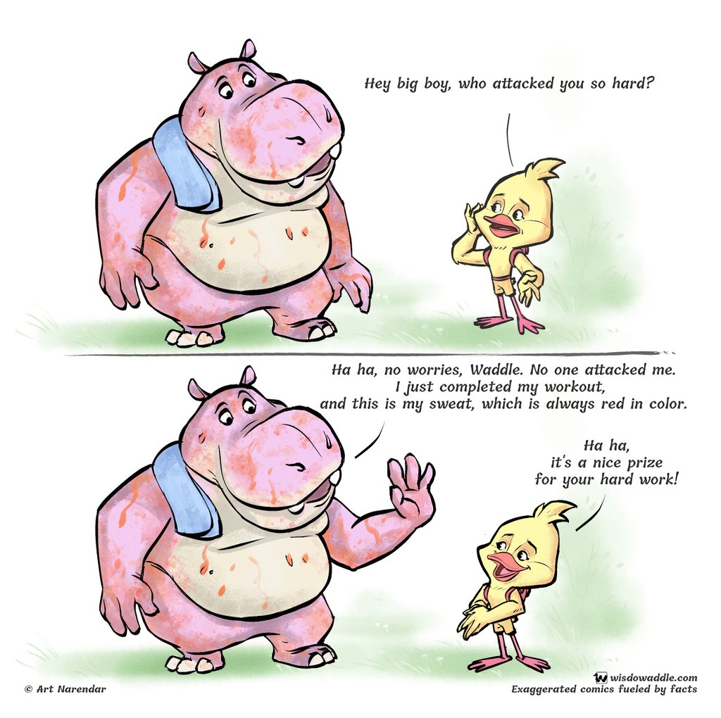 Why did the hippo turn red? To find out more, please check out this engaging short comic strip based on Hippo facts.