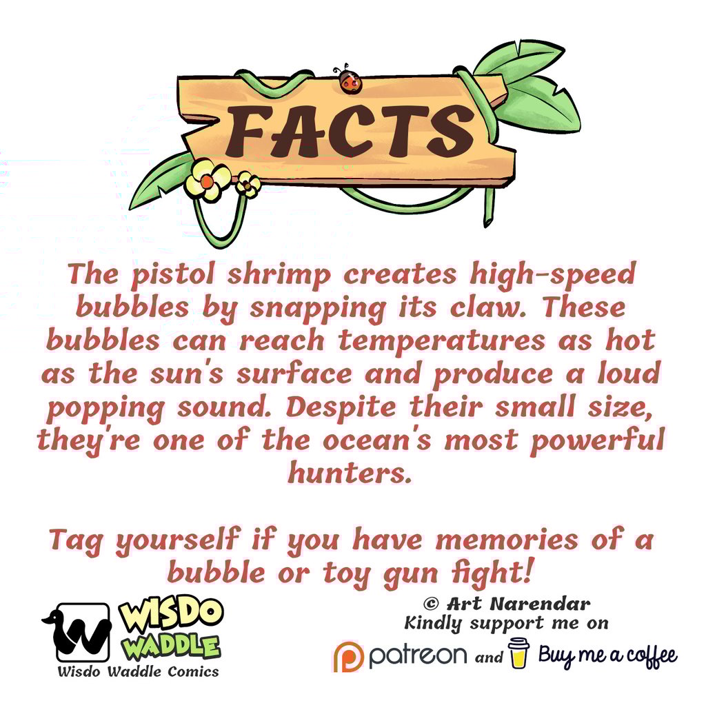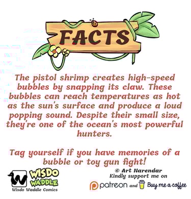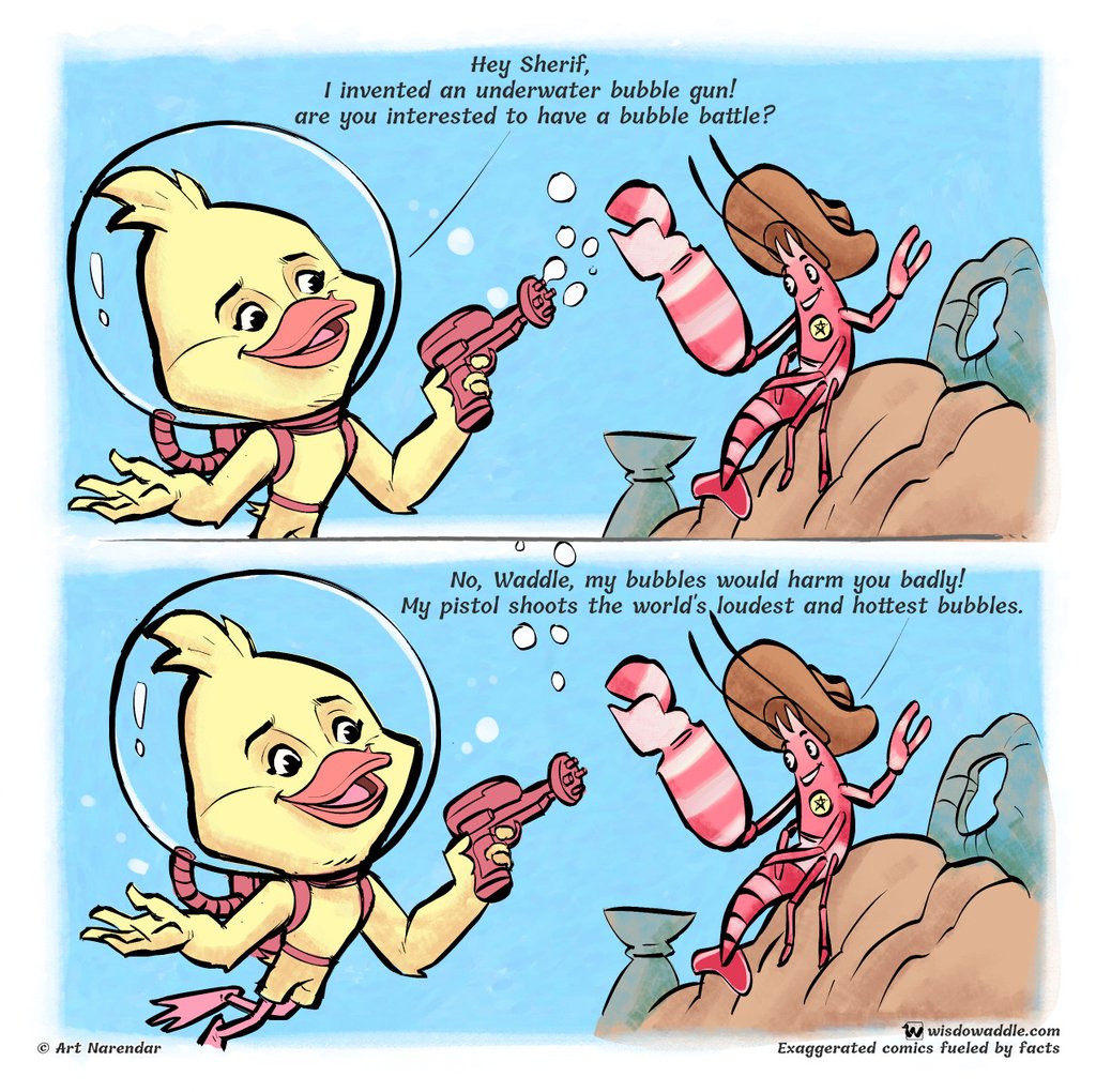 Eager to know how bubbles created by a pistol shrimp do more than any human-made gun? Please check out this engaging short comic strip based on facts about the pistol shrimp.