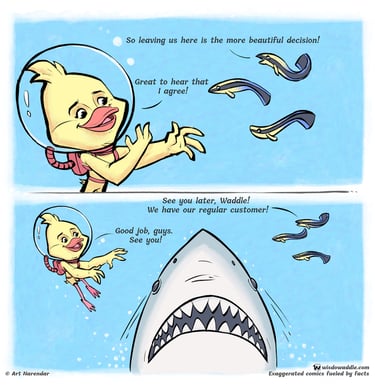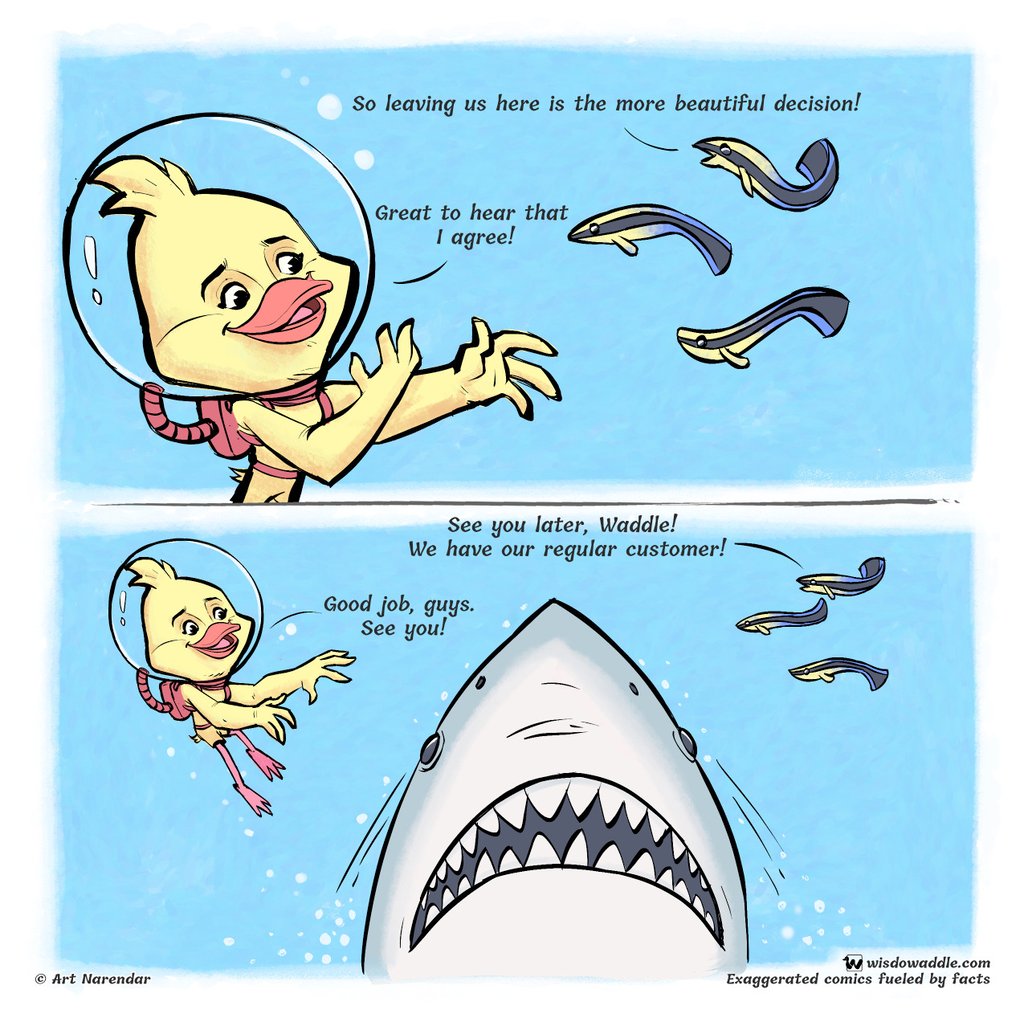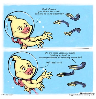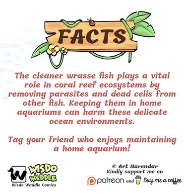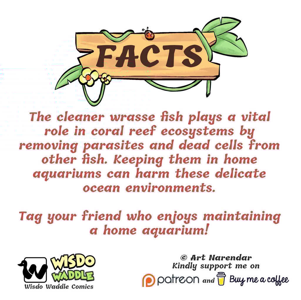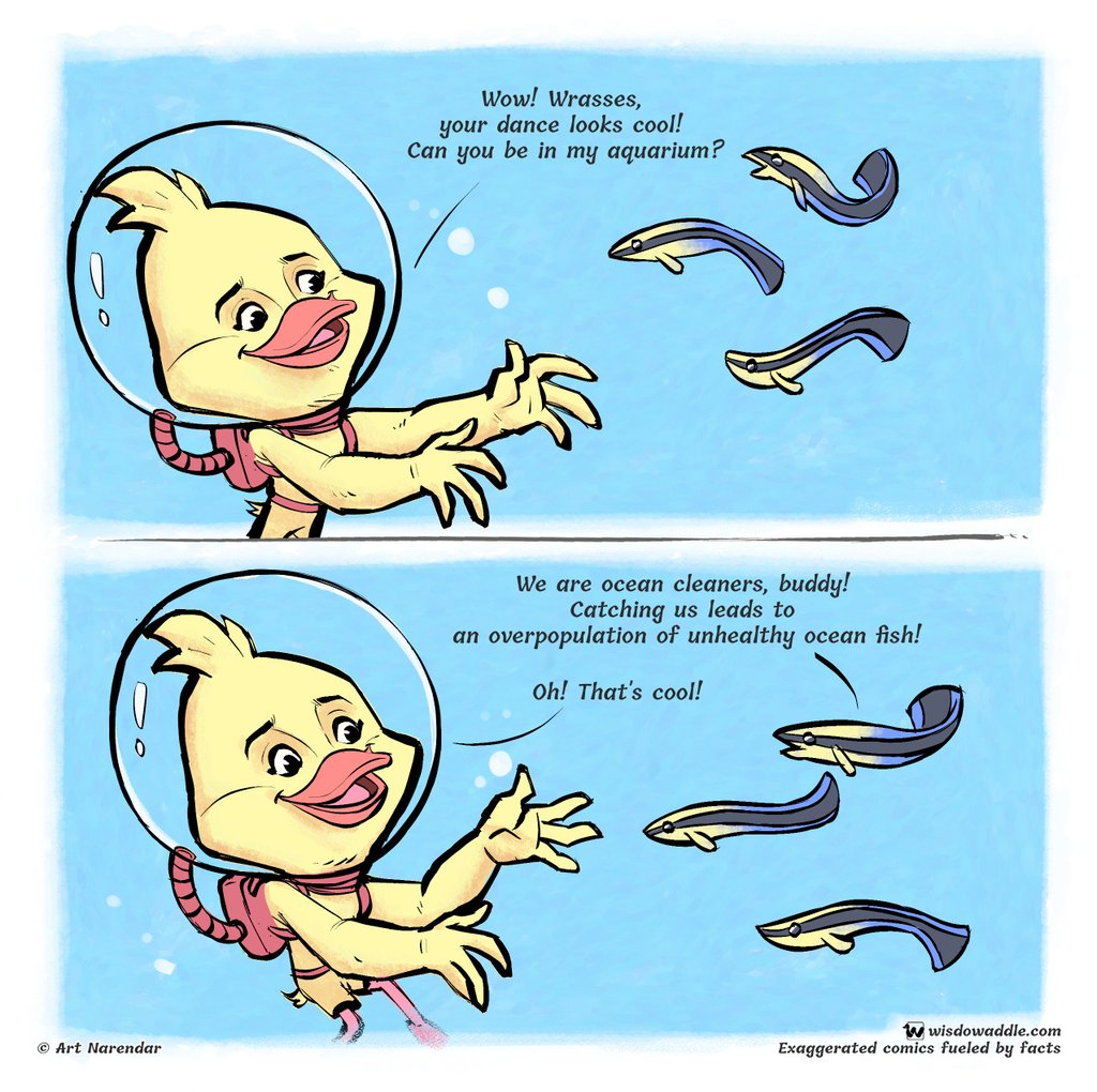 Curious about what happens when cleaner wrasse are kept in a home aquarium? Please check out this engaging short comic strip based on facts about cleaner wrasse fish.