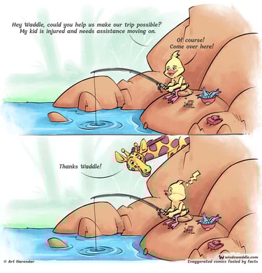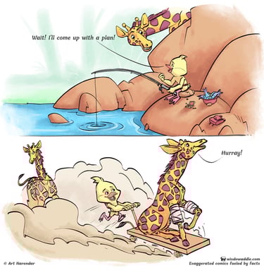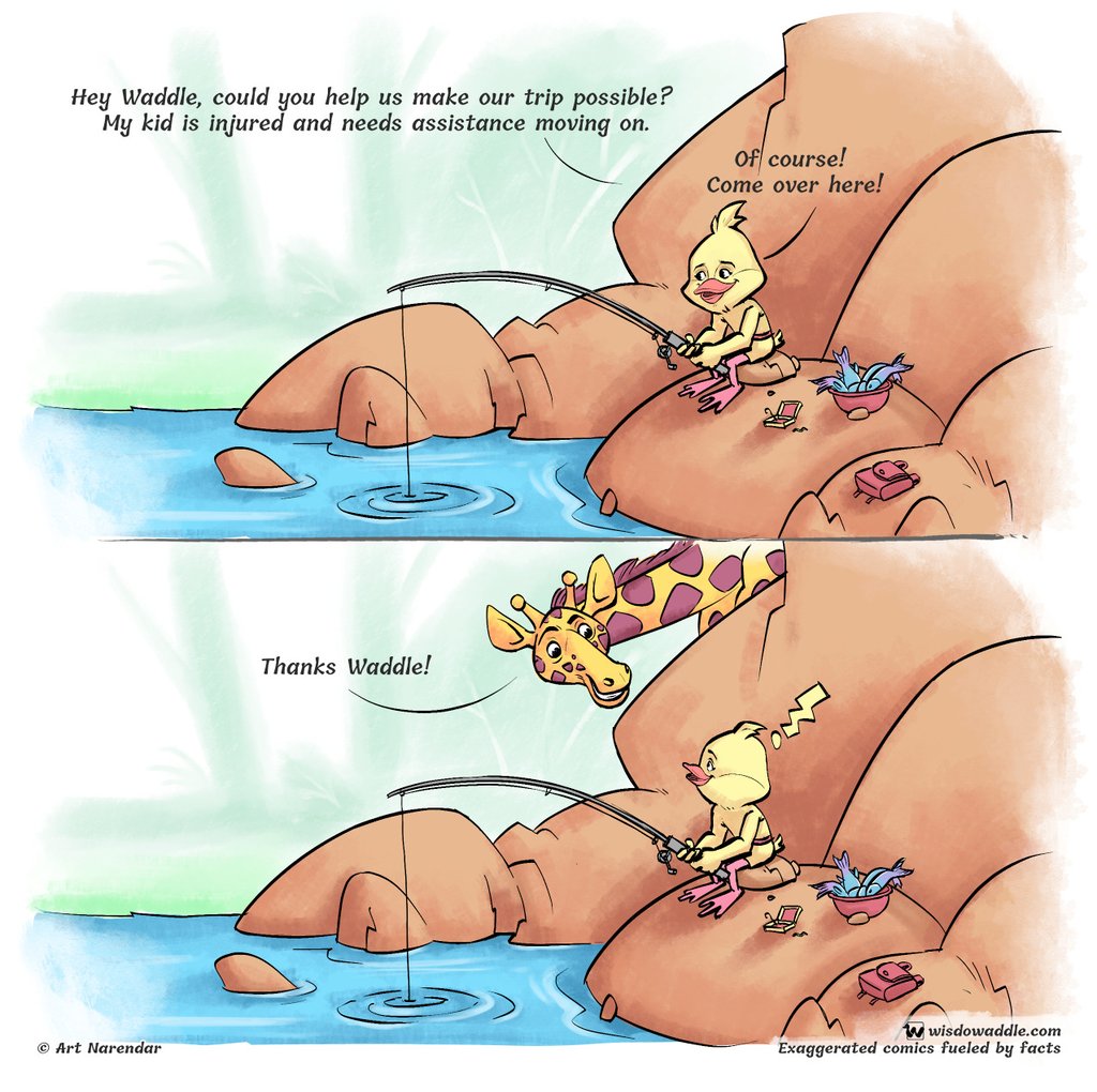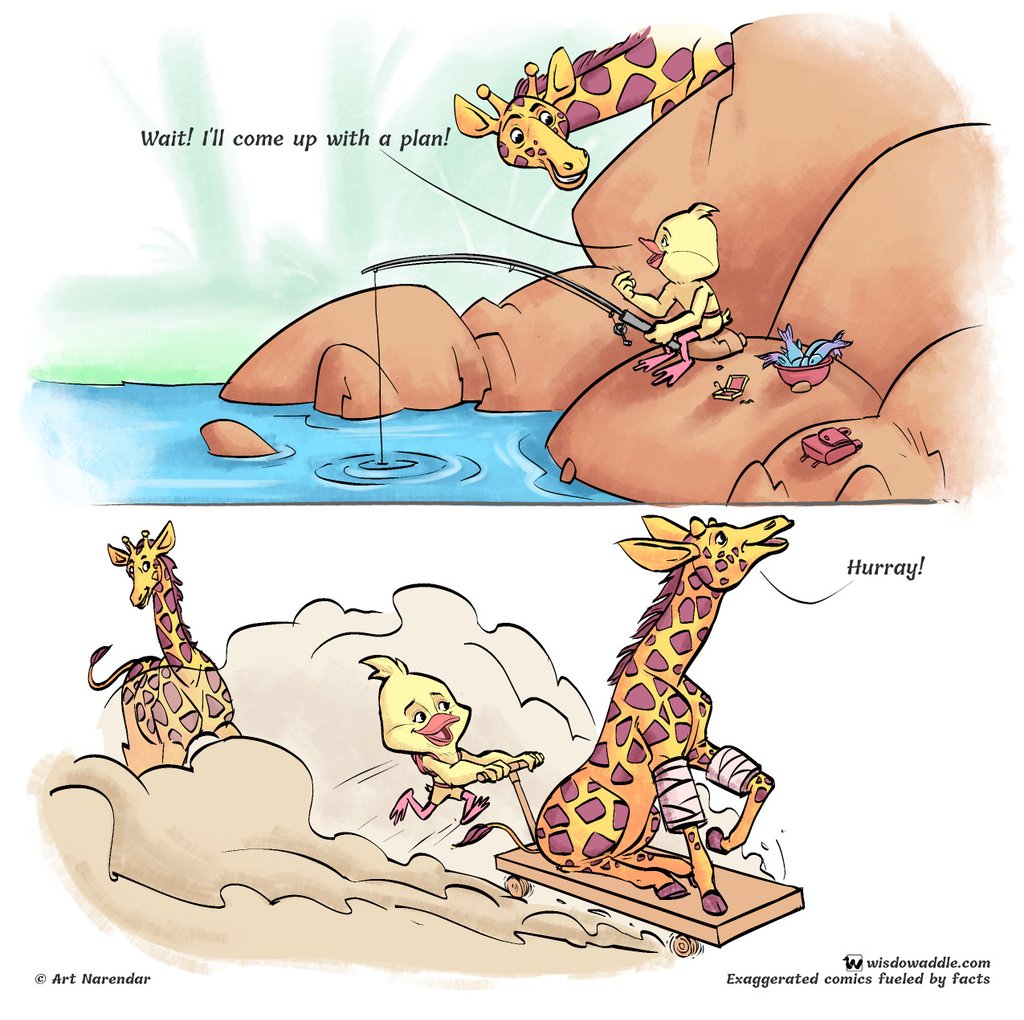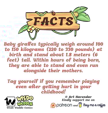Click to know how Waddle managed to carry a baby giraffe! Check out this engaging short comic strip based on giraffe facts.
