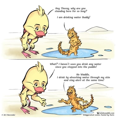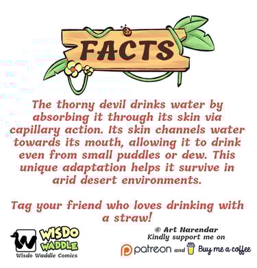 Curious about how the Thorny Devil drinks water? Check out this engaging short comic strip based on facts about the Thorny Devil.