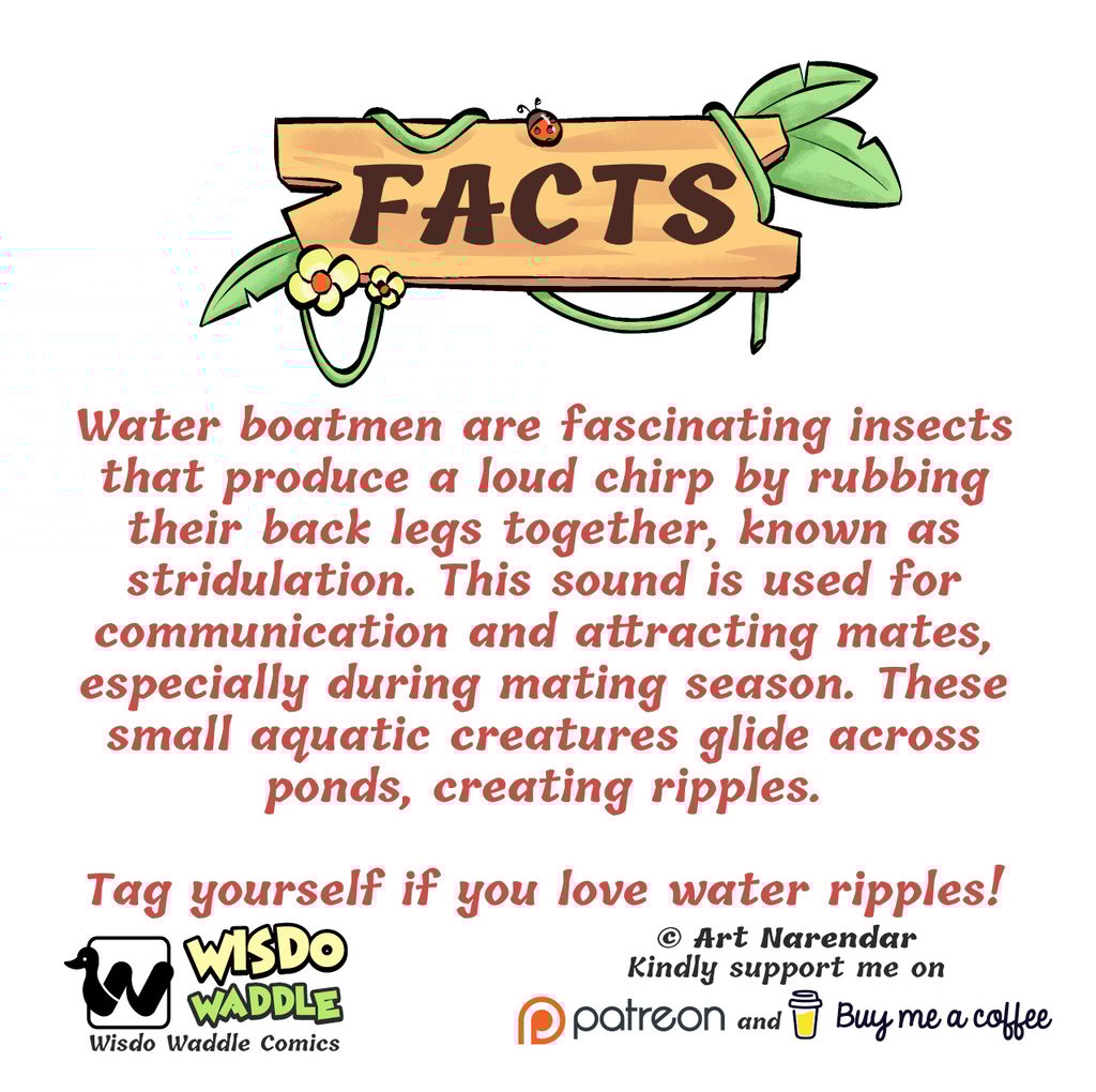 You may be amazed to know how the Water Boatman makes sounds! Check out this engaging short comic strip based on Water Boatman facts.