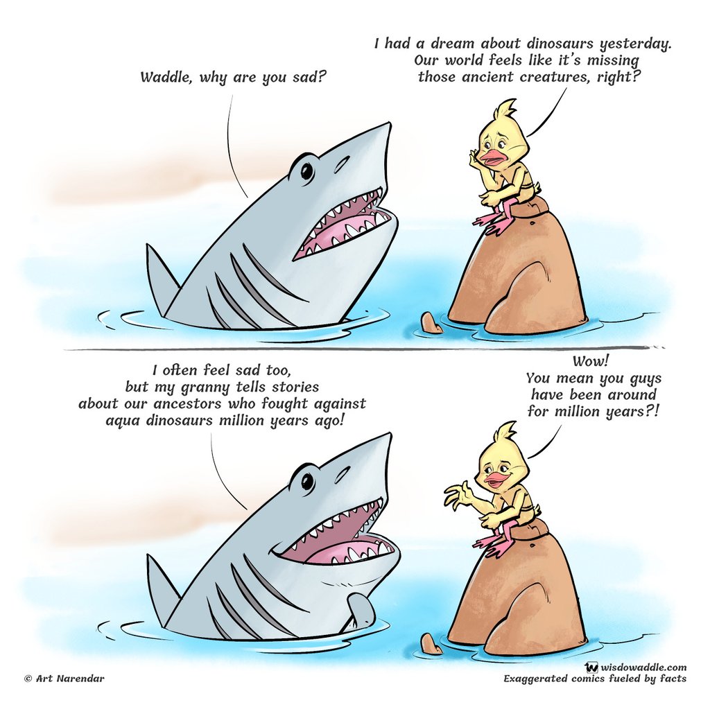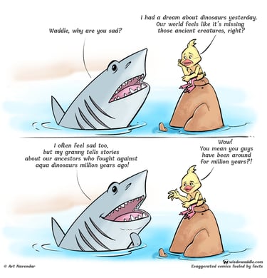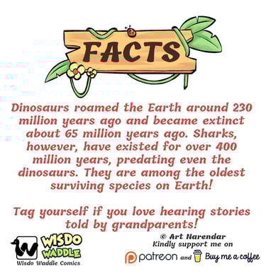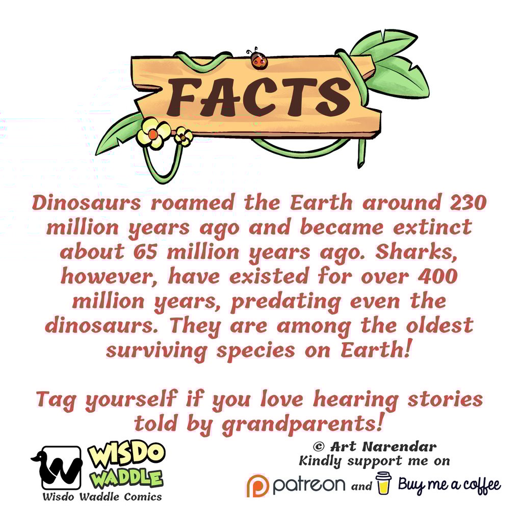 You may be amazed to know about the Shark-Dinosaur connection! Check out this engaging short comic strip based on Shark facts.