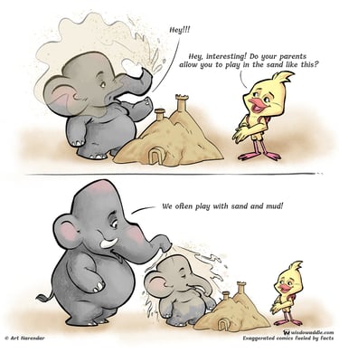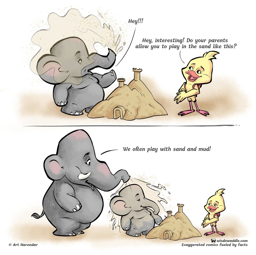 You may be amazed to know why elephants love playing with mud! Check out this engaging short comic strip based on fascinating elephant facts.