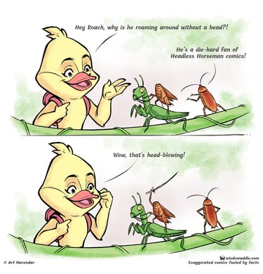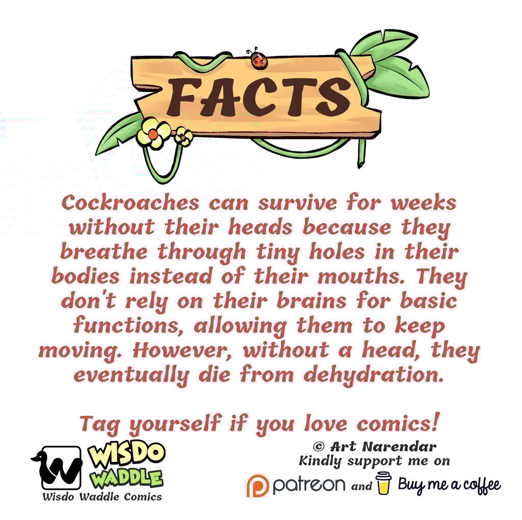 Curious about how a cockroach can survive without its head? Check out this engaging short comic strip based on fascinating cockroach facts!