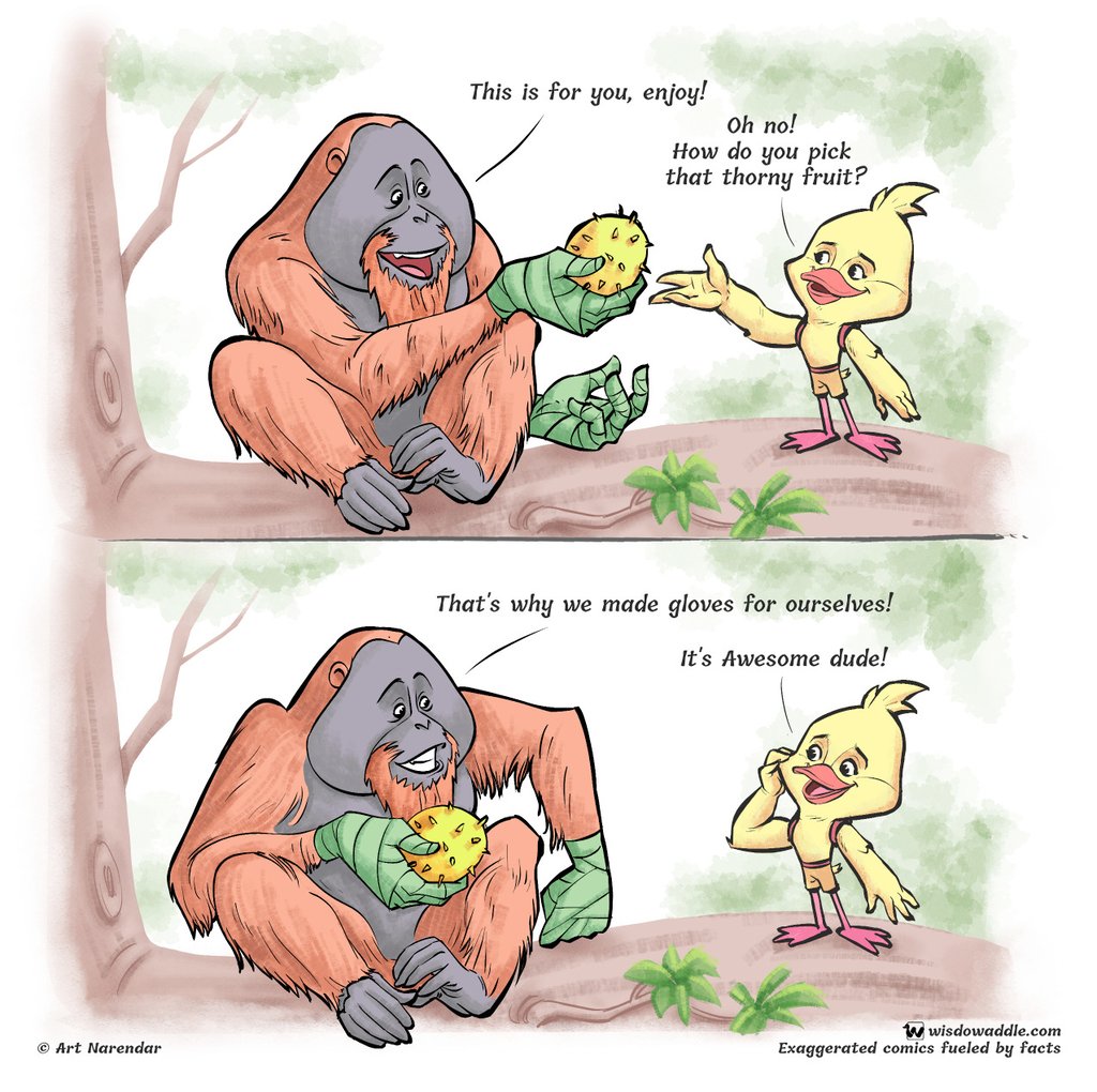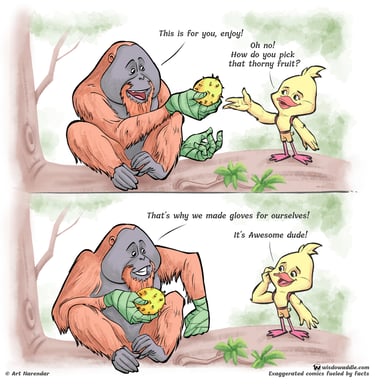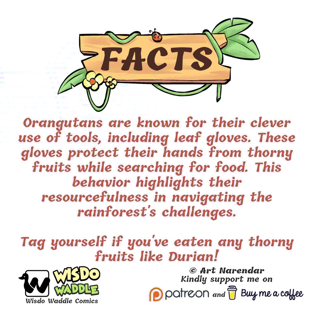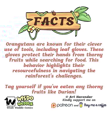 Clever Orangutans have a trick to eat thorny Durian fruit! Curious to know? Check out this engaging short comic strip based on Orangutan facts!