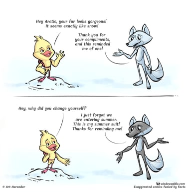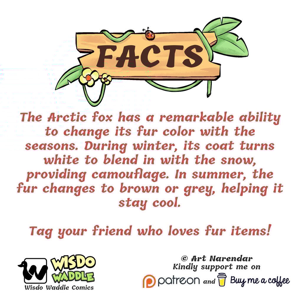Discover one of the rare survival skills of the Arctic Fox! Check out this engaging short comic strip based on fascinating Arctic Fox facts.