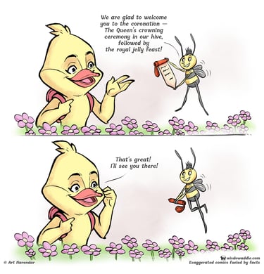 Did you know bees perform a coronation for their queens? Curious to know more? Check out this engaging short comic strip based on fascinating bee facts!