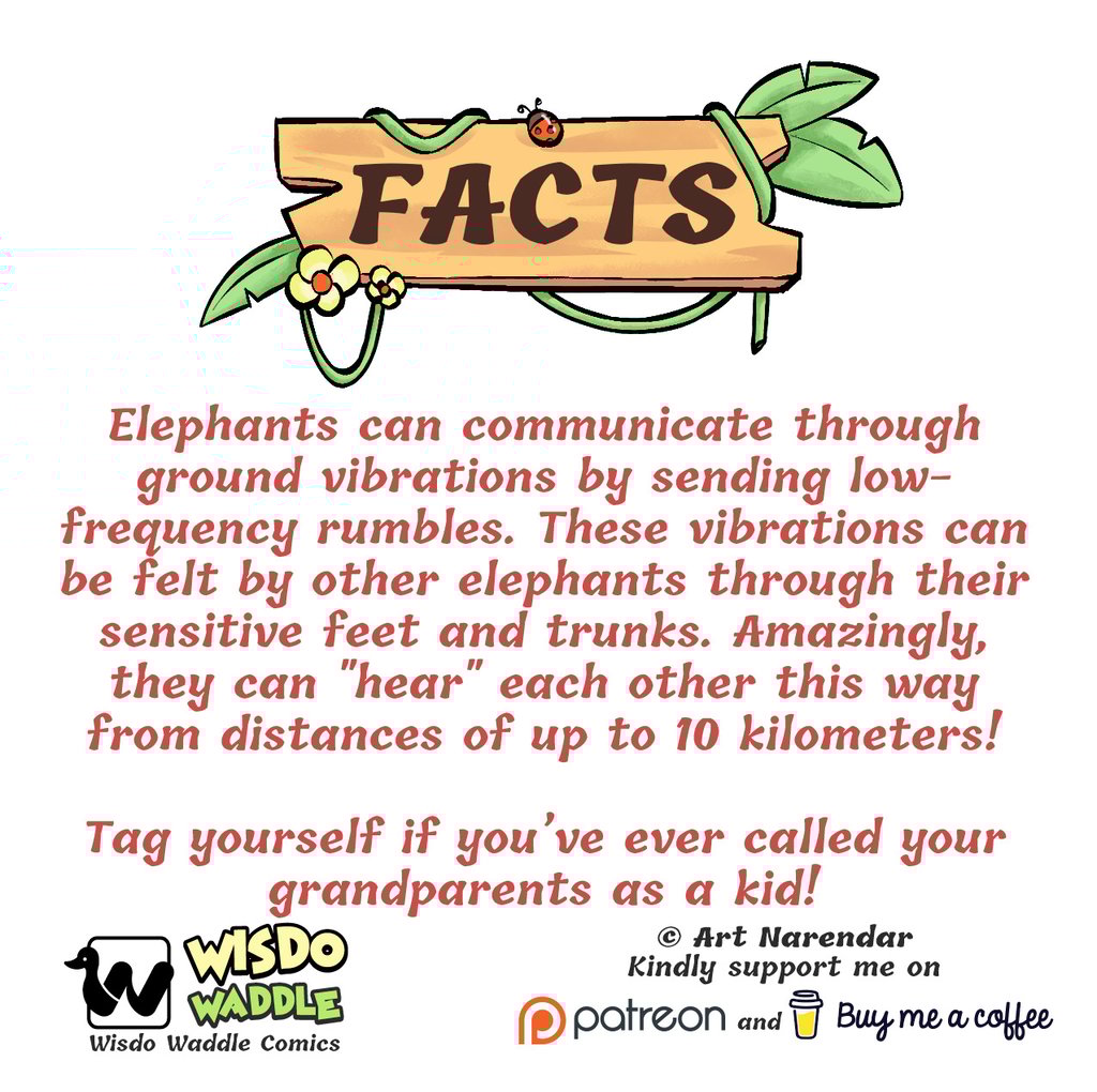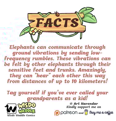 Elephants are brilliant! Curious how they communicate in a special way? Don’t miss this fun comic based on real elephant facts!