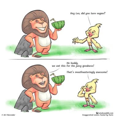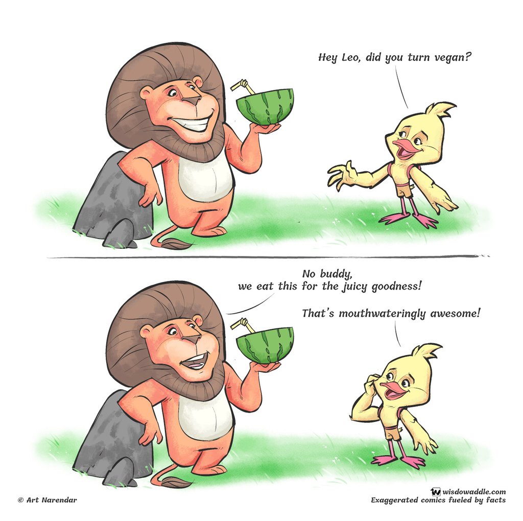 Are lions turning vegan? You might be shocked to find out! This comic strip might surprise you with wild lion facts!